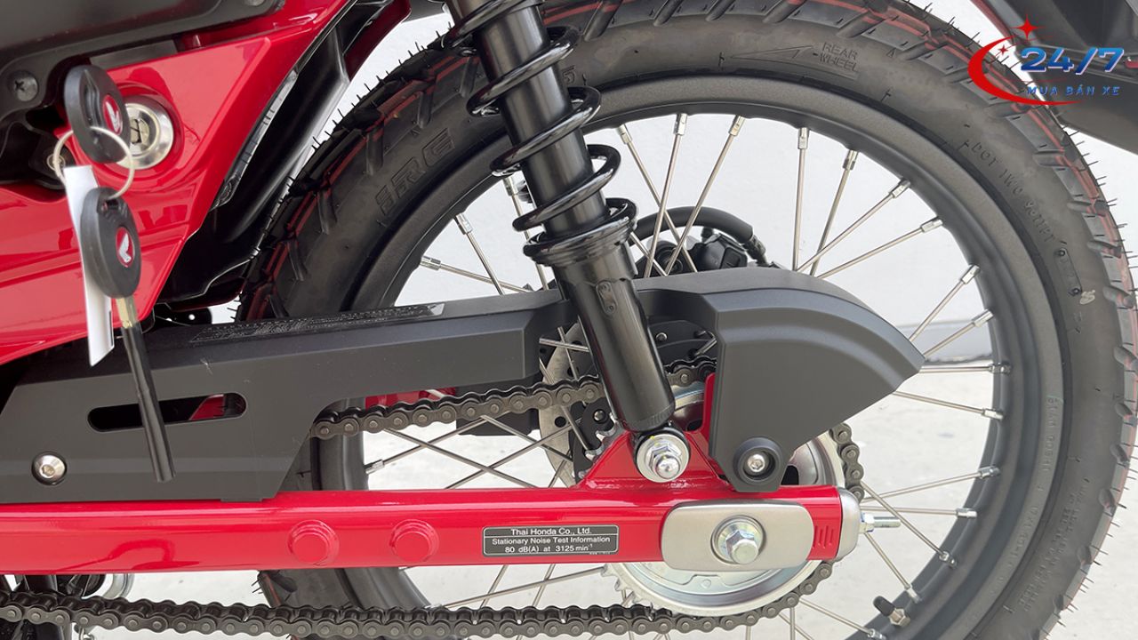 Honda CT125 ABS Màu Đỏ được trang bị phuộc sau của Showa với khả năng điều chỉnh độ cứng nhiều cấp độ. Nhờ đó, người dùng có thể tùy chỉnh theo nhu cầu chở hành lý hoặc di chuyển trên địa hình phức tạp. Khi tải nặng, phuộc có thể tăng độ cứng để giữ độ ổn định. Khi đi một mình, thiết lập mềm hơn giúp xe êm ái hơn.