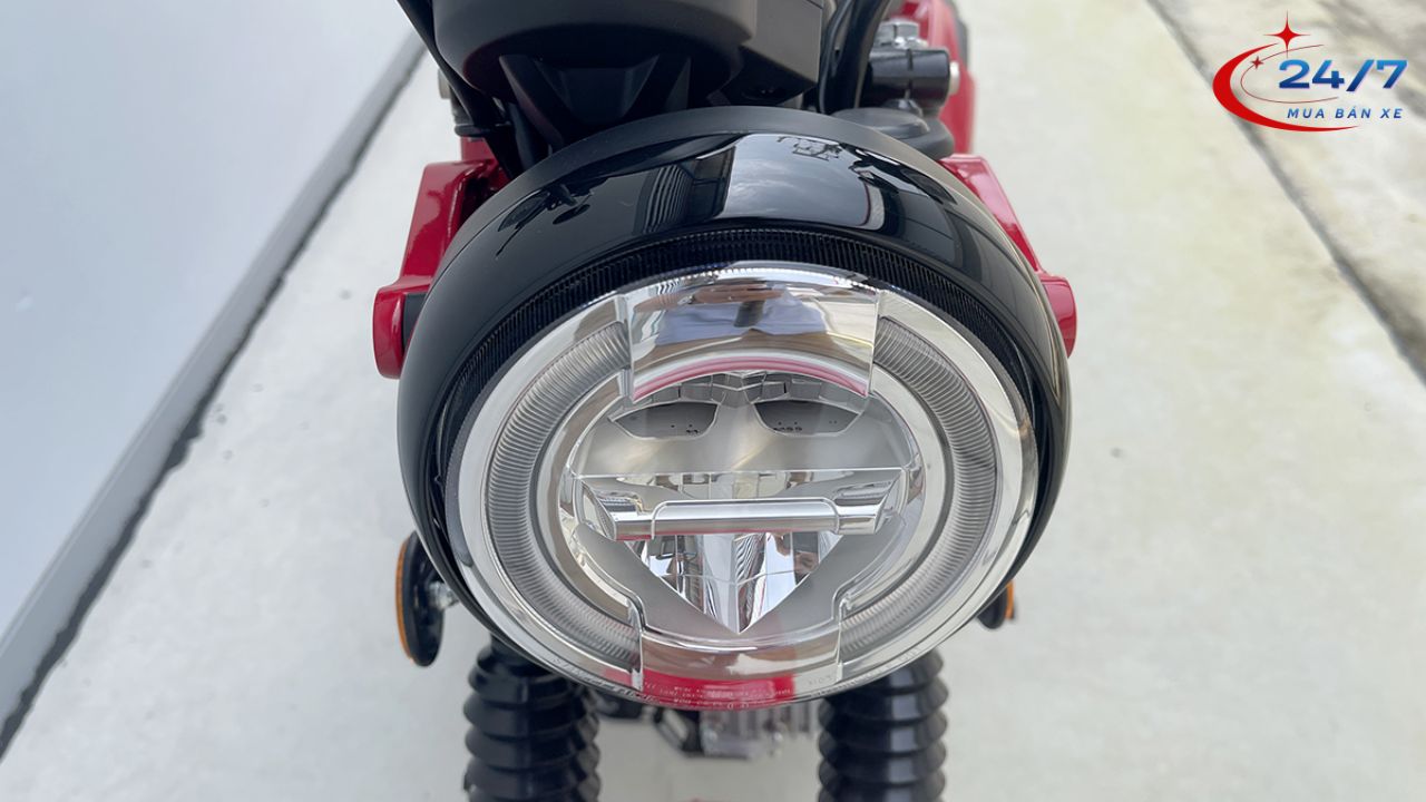Honda CT125 ABS Màu Đỏ sử dụng hệ thống đèn LED toàn bộ giúp tăng khả năng chiếu sáng. Đèn pha tròn cổ điển kết hợp công nghệ LED mang lại ánh sáng rõ ràng và tiết kiệm điện năng. Điều này hỗ trợ di chuyển an toàn hơn trong điều kiện thiếu sáng hoặc khi đi đường rừng.