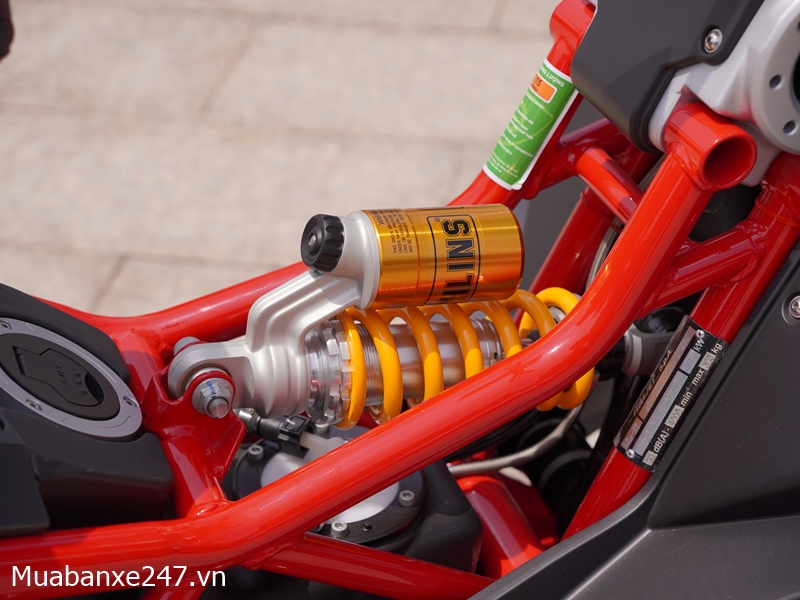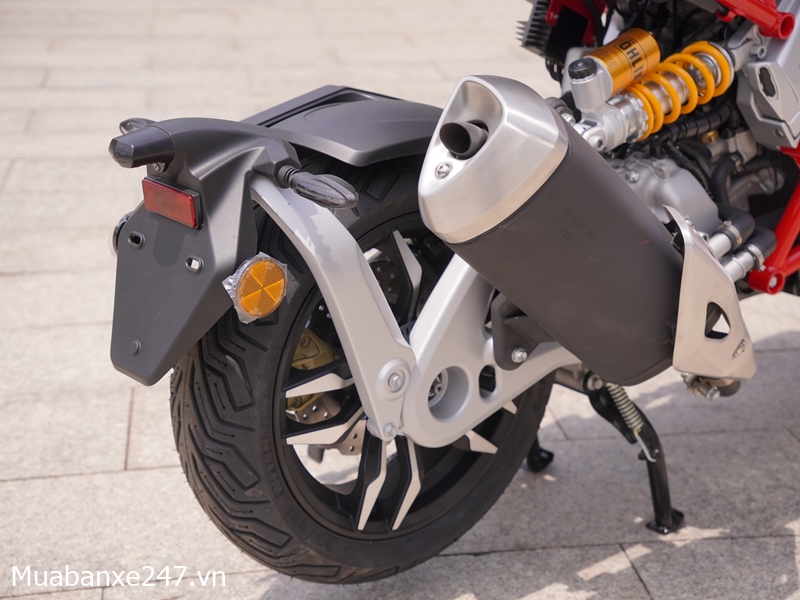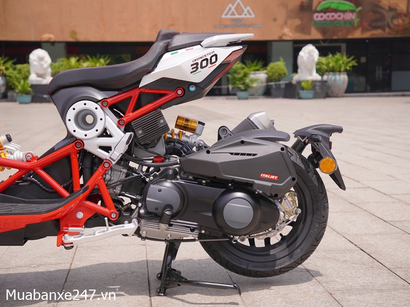 Thiết kế này không chỉ mang lại độ cứng vững cao mà còn tạo nên vẻ ngoài cực kỳ hầm hố, gợi nhớ đến các siêu mô tô Ý. Màu sắc nổi bật như đỏ hoặc vàng càng làm tăng thêm tính nhận diện khi di chuyển trên phố.